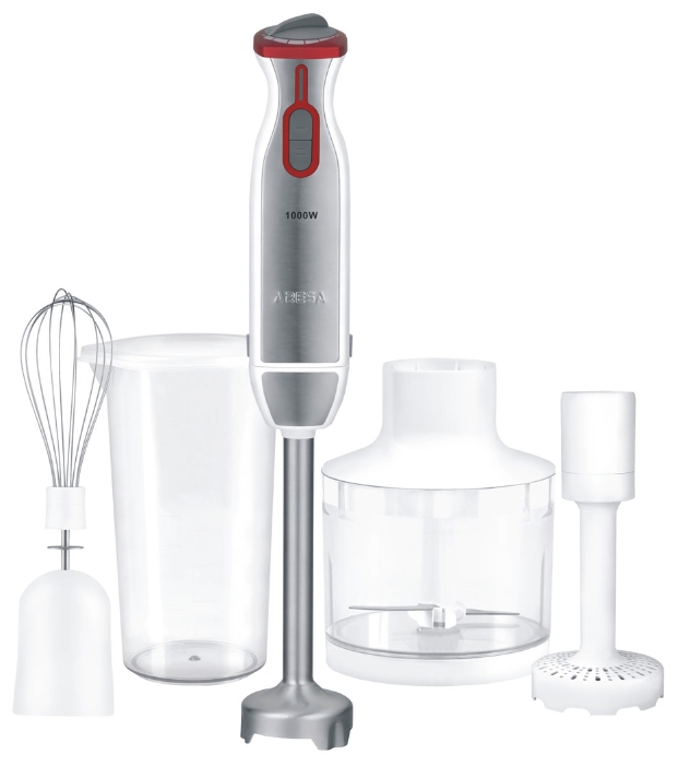 Блендер ARESA AR-1107 с 4 насадками и 2 скоростными режимами станет незаменимым помощником на кухне. С его помощью вы легко сможете взбить крем, сделать пюре, фарш и многое другое, благодаря мощности 1000 Вт. Блендер станет вашей палочкой-выручалочкой для быстрого приготовления блюд. Занимает мало места на кухне.