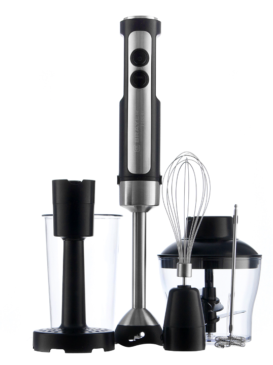 Блендер BRAYER BR1256 - это мощное и удобное устройство для приготовления различных блюд и напитков.Он оснащен мощным мотором с двумя режимами работы, которые позволяют регулировать скорость и интенсивность измельчения продуктов.У блендера BR1256 плавная регулировка скорости, а также есть функция «Турбо»,Комплект насадок подойдет под любой результат использования прибора.Блендер также имеет защиту от случайного включения и надежного крепления на основании.