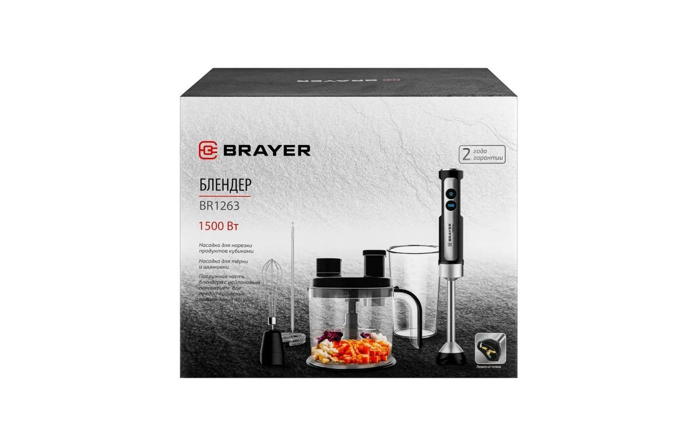 Блендер BRAYER BR1263 — это многофункциональный кухонный прибор, который поможет вам справляться с множеством задач на кухне, включая нарезку кубиками. Оснащенный мощным мотором, он легко справляется с измельчением, смешиванием и приготовлением пюре, делая процесс готовки быстрым и удобным. Функция нарезки кубиками идеально подходит для приготовления салатов, овощных гарниров и других блюд, требующих точной и равномерной нарезки.