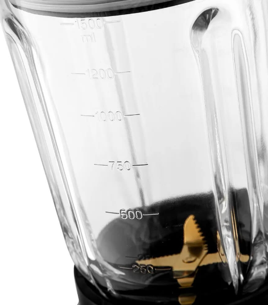 Блендер имеет 9 скоростей работы и импульсный режим, который позволяет контролировать процесс измельчения. В комплект входят стеклянный кувшин объёмом 1,5 литра с мерной шкалой и крышкой, а также насадка для измельчения льда.