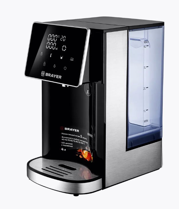 Термопот BRAYER BR6002 — это мощный и функциональный прибор для нагрева и поддержания температуры воды. Он оснащён съёмным резервуаром объёмом 4 литра. С мощностью 2600 Вт, обеспечит быстрый и эффективный нагрев воды. Термопот позволяет выбирать температуру воды от 40 до 100 градусов, а также объём порции воды от 100 до 400 грамм. Он также имеет функцию блокировки подачи воды. Корпус выполнен из нержавеющей стали и пластика, что гарантирует долговечность устройства.
