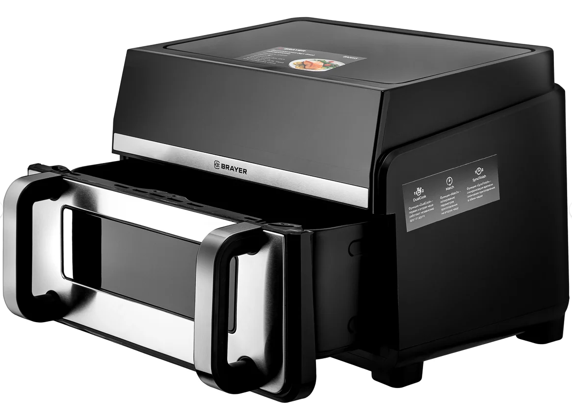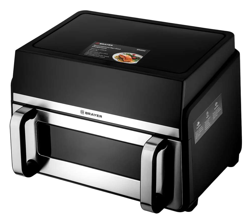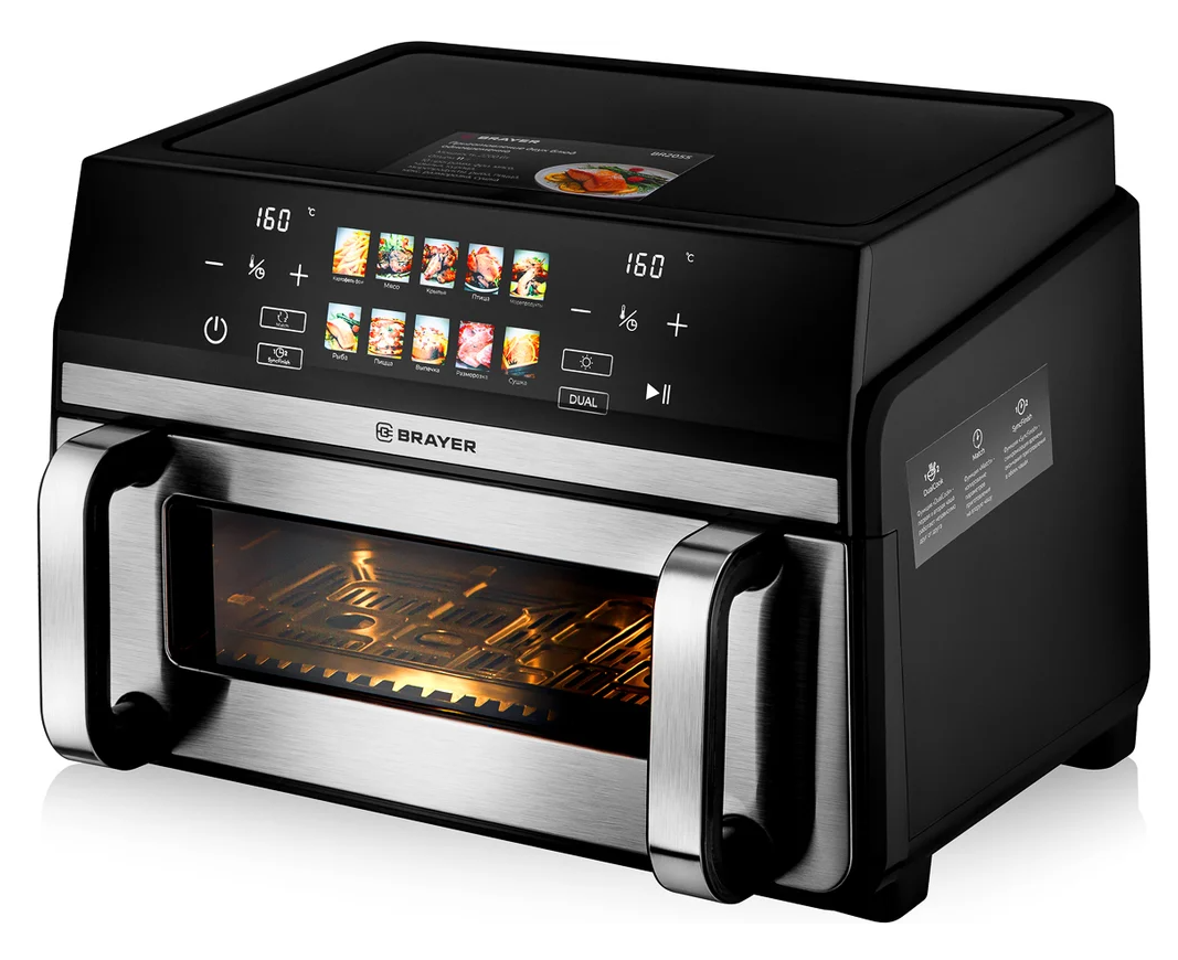 Аэрогриль BRAYER BR2055 — это многофункциональная кухонная техника с двумя чашами, которая позволяет готовить несколько блюд одновременно. Устройство сочетает мощность, удобство и широкие возможности для приготовления разнообразных блюд. Аэрогриль имеет объём 11 л ,мощность 2200 Вт. Благодаря сенсорному управлению регулируются настройки температуры (30–200 °С) и таймера (до 60 мин), значения отображаются на LED-дисплее. 10 программ: фри, мясо, крылья, курица, морепродукты, рыба, пицца, кекс, разморозка, сушка. Корпус из высокопрочного термостойкого пластика.