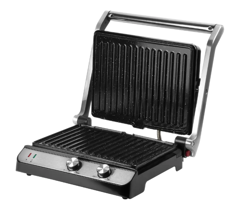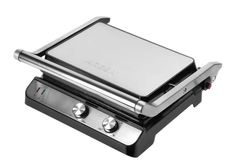 Электрический гриль ARESA AR‑1004 мощностью 2000 Вт — универсальный прибор для приготовления мяса, рыбы, овощей и других блюд. Оснащён съёмными панелями с антипригарным покрытием, регулируемым термостатом и индикатором работы. Есть поддон для сбора жира и регулировка положения верхней крышки. Компактный, удобен в использовании и очистке.