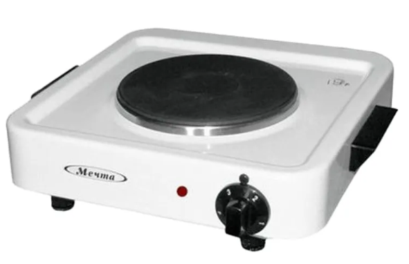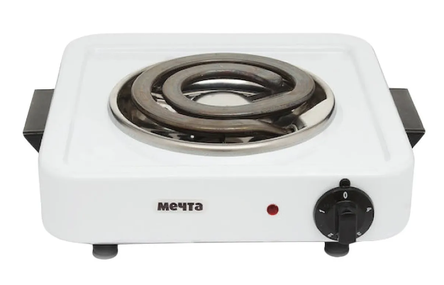 МЕЧТА 111Т - настольная электрическая плитка белого цвета. Панель покрыта высококачественной эмалью, которая легко чистится от загрязнений. Модель состоит из одной конфорки, мощность нагрева которой регулируется поворотным переключателем. Данное устройство - отличный помощник на кухне. Благодаря прорезиненным ножкам, плитка устойчива на любой неровной поверхности.