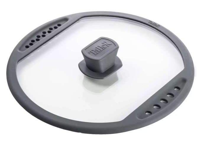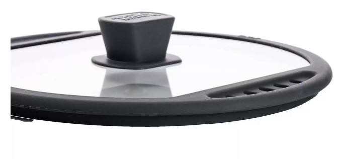 Крышка подойдет для сковород с диаметром 24 см. Выполнена из жаропрочного боросиликатного стекла и пищевого силикона. Специальные отверстия в ободе позволяют сливать жидкость из посуды без дополнительных приспособлений. Использование отверстий для слива в качестве паровыпуска предотвращает выкипание. Силиконовый обод улучшает прилегание крышки к посуде и предотвращает появление царапин и сколов на посуде. Также силиконовый обод обеспечивает бесшумное использование крышки. Проста в уходе и чистке.