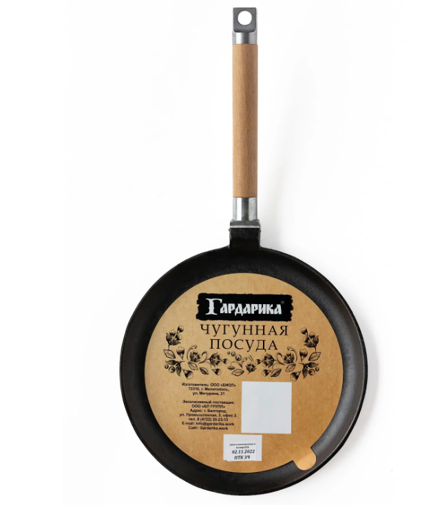 Сковорода блинная ГАРДАРИКА 0822, чугун 22см, съемная ручка
