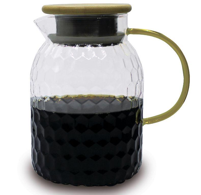 Чайник-кувшин заварочный, 1200 мл, корпус из термостойкого боросиликатного рельефного стекла, бамбуковая крышка с фильтром.