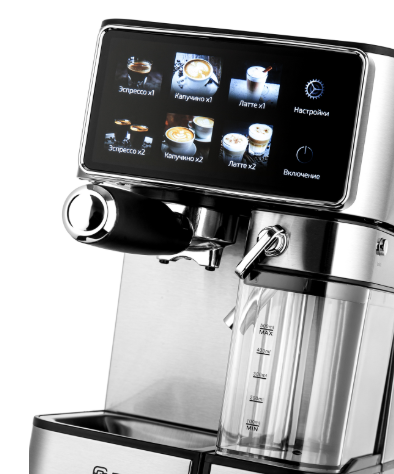 быстрый пар, одновременное приготовление двух чашек, подача горячего молока, подача горячей воды
