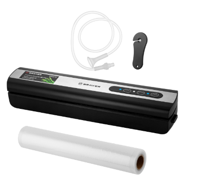 Вакууматор BRAYER BR5072 (120 Вт) предназначен для сохранения свежести продуктов: удаляет воздух из пакетов и запаивает их. Скорость вакуумирования — 3 л/мин, степень вакуума — 0,65 бар. Поддерживает пакеты шириной до 29 см. Есть функции вакуумирования в контейнерах и запайки пакетов, встроенный резак. В комплекте — рулон плёнки и вакуумный шланг. Питание: 220–240 В.