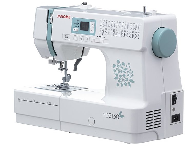 Janome HD6130 компьютерная, компактная, с горизонтальным челноком. 30 операций воплощают идеи от простого: прошить, обработать, создать изделия из трикотажа до сложного и творческого — украсить вещь декоративными стежками или строчками для квилтинга. Усиленный прокол иглы Janome HD6130, дополнительный подъём лапки дают возможность для работы с плотными тканями. Свободный рукав помогает в деле, где требуется шить узкие части. Программируемая петля позволяет быстро создать застёжки. Регулировка скорости шитья сбавляет обороты и держит ситуацию под контролем. Функция полезна для новичков, а также для проработки сложных мест. Отрегулировать строчку, выставить параметры помогают кнопки на панели машины. Значения отображаются на ЖК-дисплее. Janome HD6130 даёт быстрый старт новым мастерам, удовольствие от работы опытным швеям, а главное, радует качественным результатом.