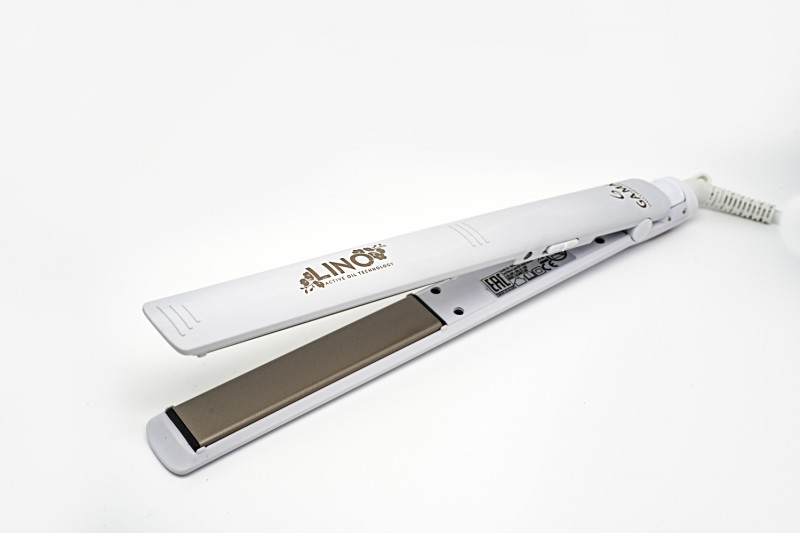 Выпрямитель GA.MA ELEGANCE LINO оснащён удлинёнными плавающими пластинами размером 2,5 × 12 см, покрытыми керамикой с добавлением эфирного масла семян льна. Это обеспечивает лёгкое скольжение по волосам, увлажнение и улучшение их структуры. Постоянная температура 230 °C подходит для разных типов волос. Технология Ceramic Ion уменьшает пушистость волос. Вращающийся на 360 градусов шнур длиной 2,5 метра удобен в использовании.
