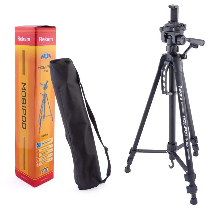 Штатив Rekam MOBIPOD E-160 — это универсальный 3-секционный штатив, укомплектованный высококачественным держателем для смартфонов с диагональю экрана до 6,5 дюймов. Он предназначен для путешествий, выездных съёмок и любительской, студийной, макро и каталожной фотосъёмки. В комплекте идёт прочная сумка-чехол с плечевым ремнём.