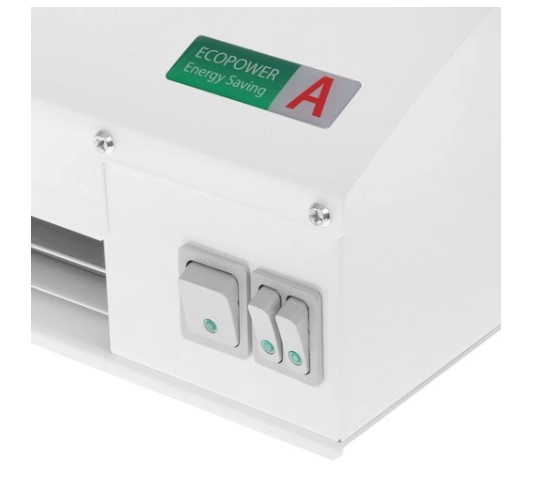 Модель оснащена системой нагрева воздуха и вентилятором, которые совместно создают воздушный поток, направленный вниз, формируя «завесу» вдоль дверного проёма. Конструкция устройства учитывает особенности интенсивной эксплуатации, а компоненты подобраны с ориентацией на стабильную работу в разных условиях. Управление режимами осуществляется через встроенную панель, что позволяет быстро адаптировать работу под текущие задачи без лишних усилий.