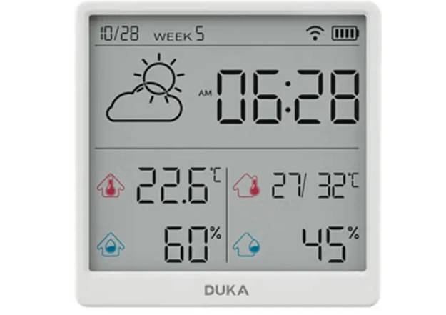 Метеостанция Xiaomi ATuMan Duka TH3 — это компактный прибор для контроля температуры и влажности в помещении. Устройство оснащено беспроводным подключением Wi-Fi, что позволяет получать актуальные данные о погоде в реальном времени.