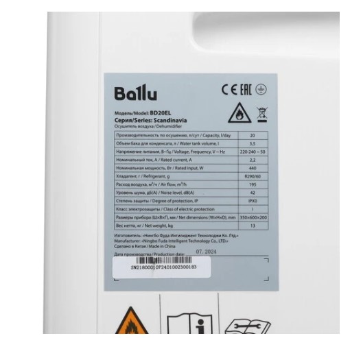 Осушитель воздуха BALLU Scandinavia BD20EL