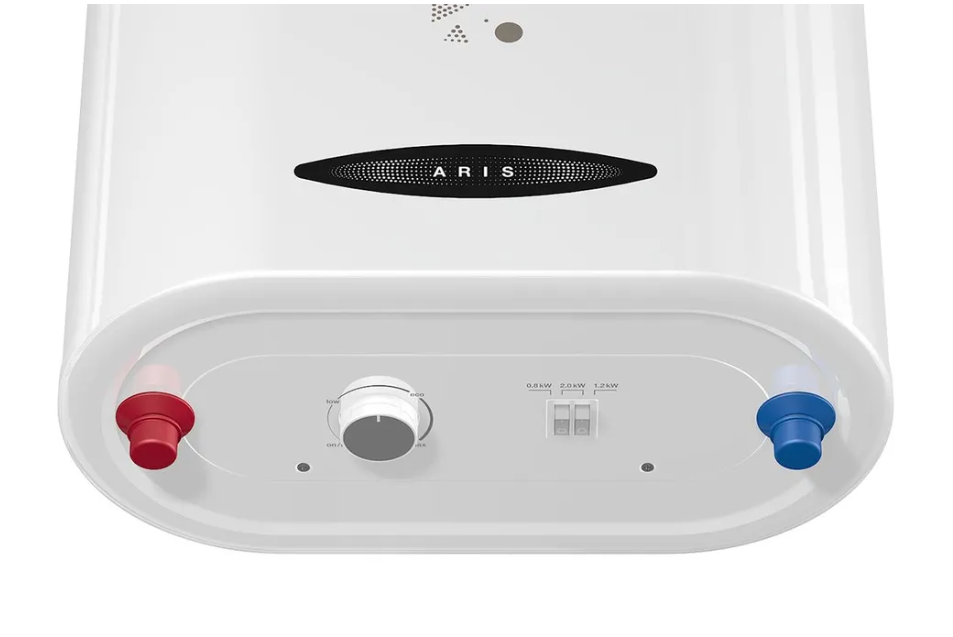 Водонагреватель THERMEX Aris 50 с сухим ТЭНом — это плоский накопительный водонагреватель объёмом 50 литров. Он оснащён эмалированным внутренним баком, механическим управлением и тремя режимами нагрева. Мощность водонагревателя составляет 2 кВт, а напряжение питания — 230 В.