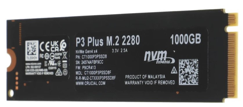 Накопитель SSD 1Tb M.2 2280 Crucial P3 Plus NVMe PCIEx4 (CT1000P3PSSD8)