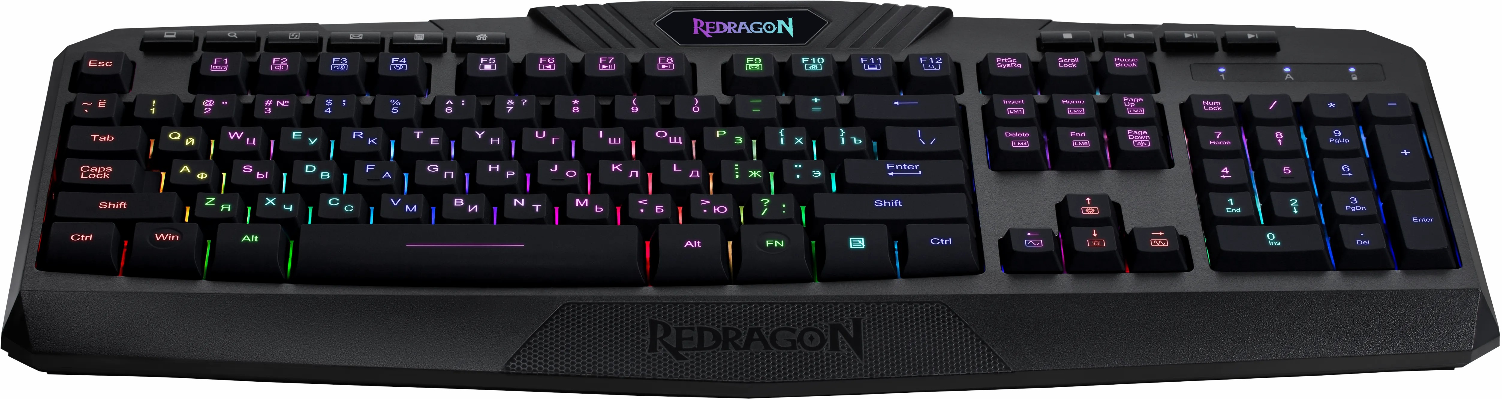 Redragon Harpe оснащена яркой RGB подсветкой, которая поддерживает множество режимов и эффектов, позволяя настроить её под свой стиль и настроение. Подсветка также обеспечивает удобство работы и игр в условиях низкой освещенности. С прочными и отзывчивыми мембранными клавишами, клавиатура гарантирует комфортное и точное нажатие, что особенно важно в динамичных играх и при наборе текста.