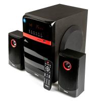 В комплекте Dialog AP-240B есть две небольшие колонки по 10 Вт каждая, а также мощный сабвуфер. Все элементы системы произведены из MDF и работают от стандартной сети 220 В. В представленной модели предусмотрено магнитное экранирование динамиков. Воспроизведение возможно как с внешних накопителей, так и через Bluetooth.