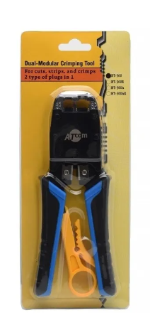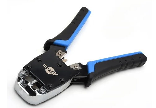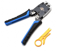 Устройство обжимное - это универсальный инструмент, предназначен для обжима разъемов RJ-45 (8P8C), RJ-12 (6P6C), RJ-11 (6P4C и 6P2C), а также для снятия изоляции и обрезки проводов.