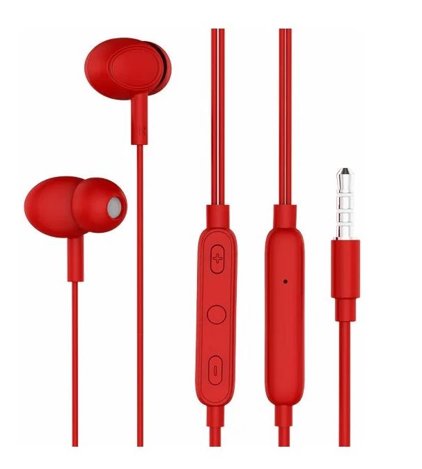 Наушники с микрофоном PERO EP14 красный EP14R