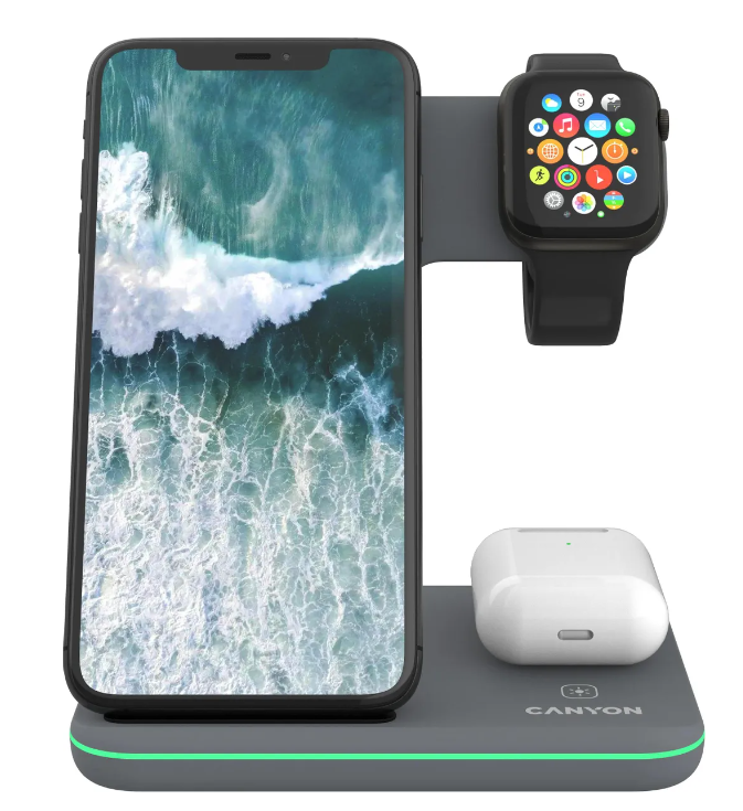 Беспроводное зарядное устройство CANYON WS-303 3в1 Темно-серый (GX1CNSWCS303DG)
