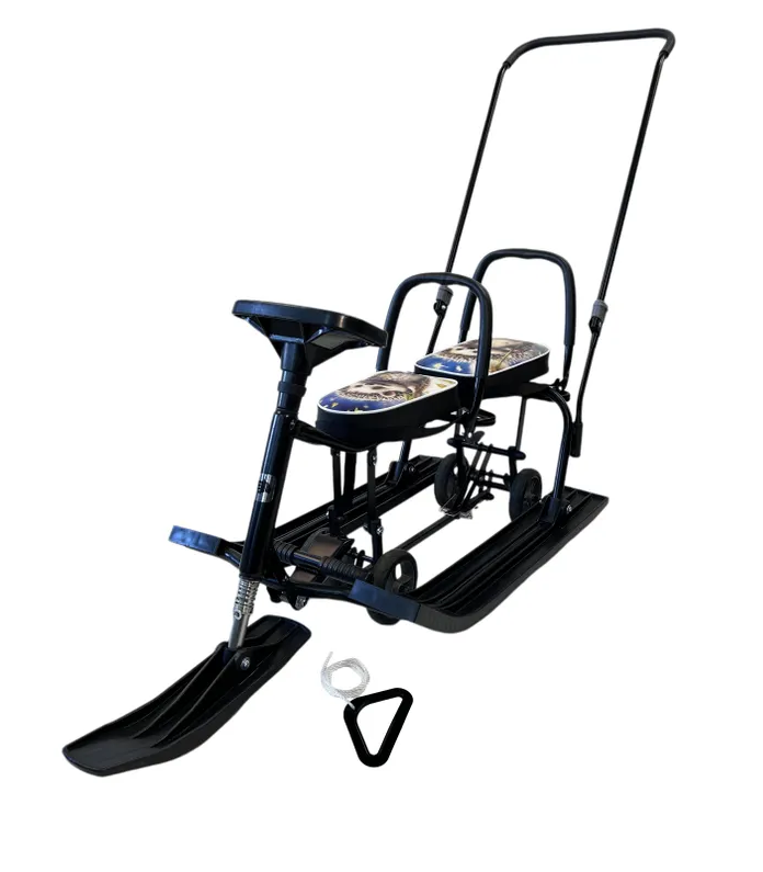 Снегокат детский разборный «TWINS BABY Wheel» (БАРС507) с ёжиками предназначен для перевозки двух детей возрастом от 3 лет. Он оснащён двумя складными сидениями с индивидуальными ремнями безопасности, съёмной родительской ручкой-толкателем и буксировочным тросом с удобной ручкой.