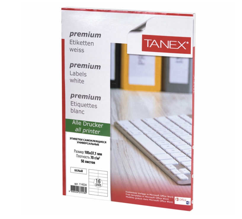 Универсальные самоклеящиеся этикетки TANEX производятся из высококачественного сырья ведущего европейского производителя UPM-Kymmene Финляндия.