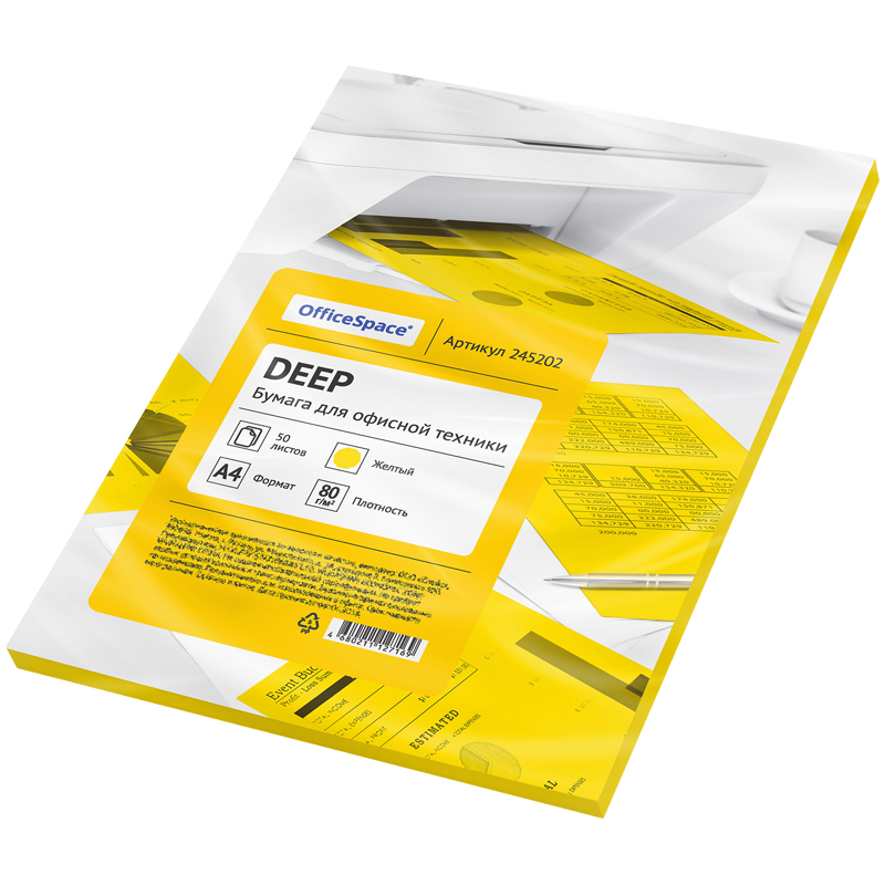 Цветная бумага OfficeSpace deep формата А4 отлично подходит для офисной техники. 50 листов в упаковке плотностью 80 г/м2. Насыщенность цвета - умеренно-интенсивный. Обеспечит качественную четкую печать текстов. Упаковка - пакет с клеевой полосой.