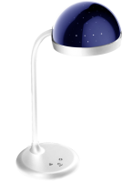 Настольный светодиодный светильник Camelion KD-828 C01 сочетает в себе функцию местного освещения и функцию RGB-проектора звёздного неба. Источник света — встроенные светодиоды мощностью 6,5 Вт, максимальный световой поток составляет 360 лм. Основание и плафон выполнены из ABS-пластика, гибкая металлическая стойка регулируется по углу наклона. Верхняя часть плафона выполнена в виде тёмной полусферы для создания проекций звёзд. Цвет корпуса светильника — белый, верхняя часть плафона — чёрная. В комплект входят адаптер и провод питания длиной 1,5 метра.