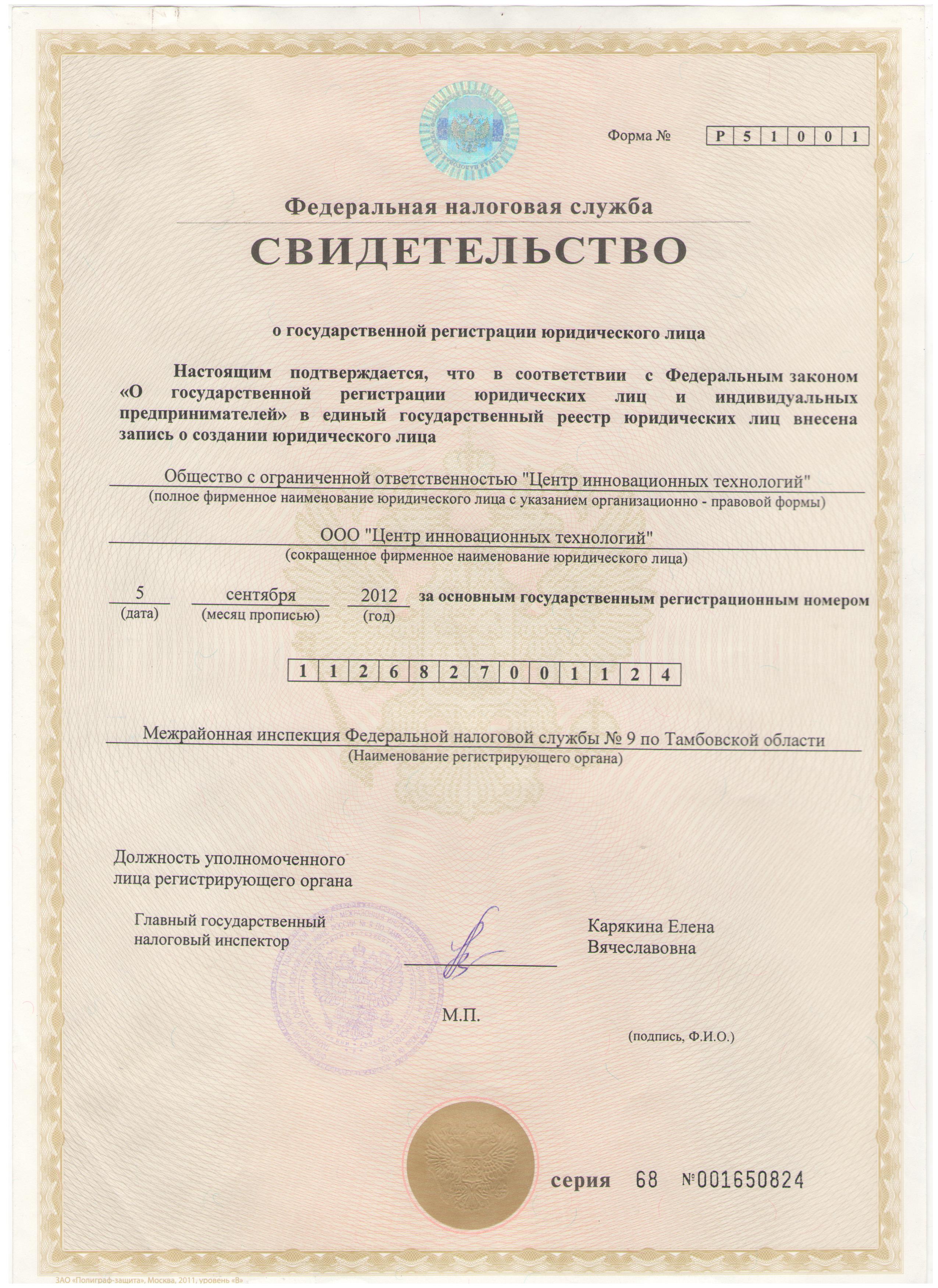 - Свидетельство о государственной регистрации юридического лица.