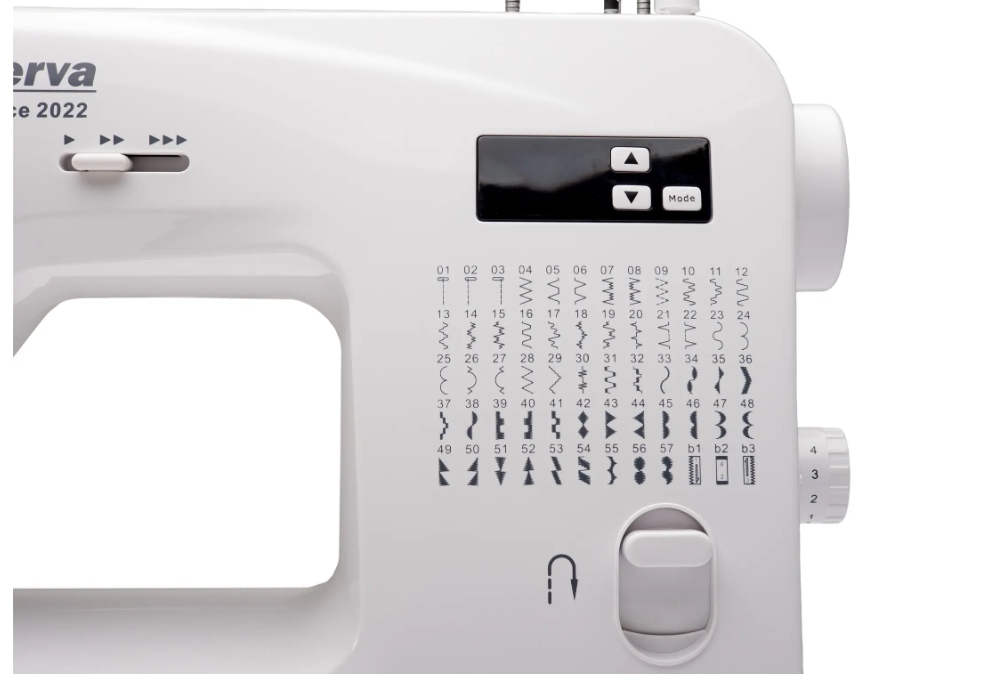 Электронное управление. Автоматическая намотка шпульки,Металлическая станина,Возможность шитья двойной иглой,Удобный диск выбора строчек,Регулятор натяжения верхней нити,Заправщик нити в иголку,Рычаг обратного хода (Реверс),Замена прижимной лапки за одно нажатие,Освещение - LED-лампаОбрезчик нити,Ручка для переноса машины,Свободный рукав (для обработки низа рукавов, брюк), Отсек для хранения аксессуаров.