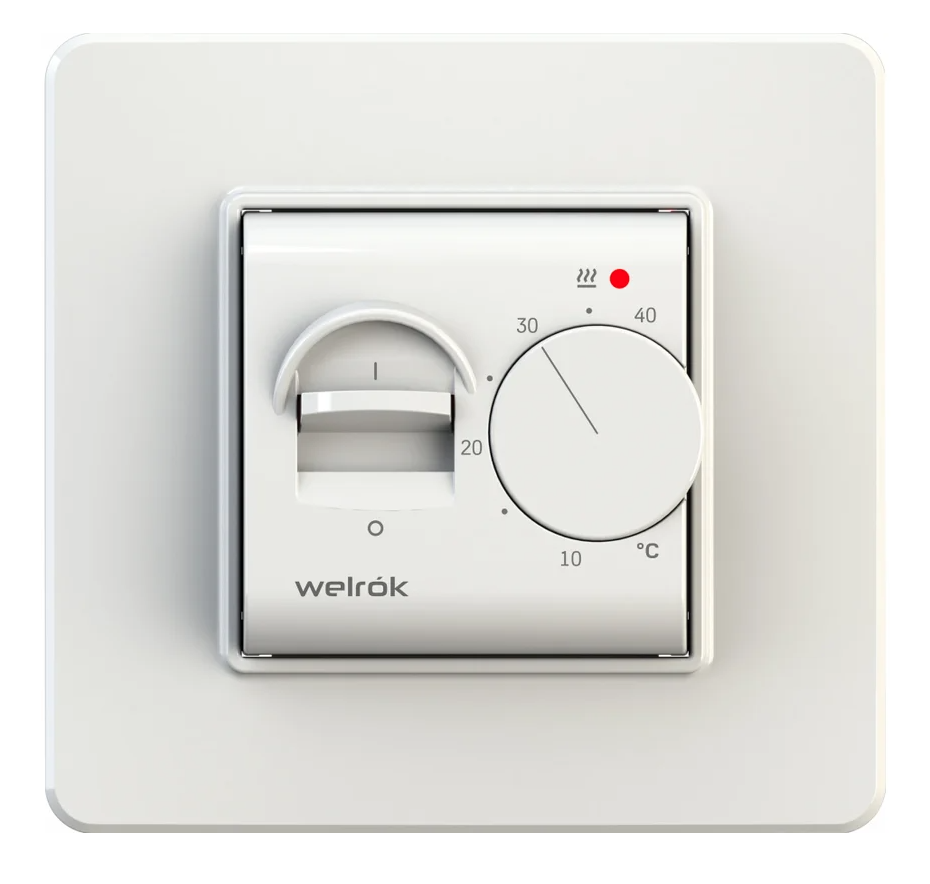 WELROK MEX предлагает простой и надежный способ регулировки температуры в диапазоне от +10 до +40 °С. Белый цвет корпуса и отсутствие необходимости в рамке делают его универсальным решением для любого интерьера. Этот терморегулятор – отличный выбор для тех, кто ценит простоту, надежность и удобство использования. Он не поддерживает программирование, таймер или управление по Wi-Fi, предлагая прямое и понятное управление температурой без лишних сложностей.